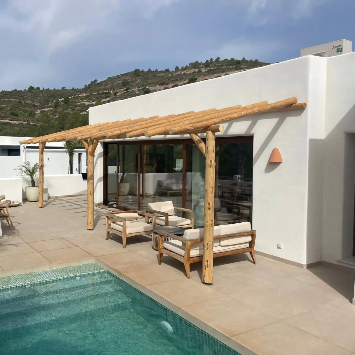 Instalación de pérgolas de madera en Baleares, ofreciendo soluciones elegantes y funcionales para terrazas, jardines y patios
