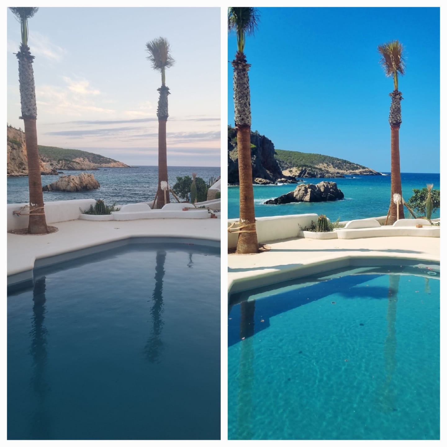 En este proyecto en Ibiza, Natural Seven House diseñó y ejecutó una piscina natural (biopiscina) pensada para integrarse con el paisaje mediterráneo y ofrecer una experiencia de baño más orgánica. El objetivo fue crear un espacio exterior de alto valor estético y funcional, con depuración biológica y acabados naturales.