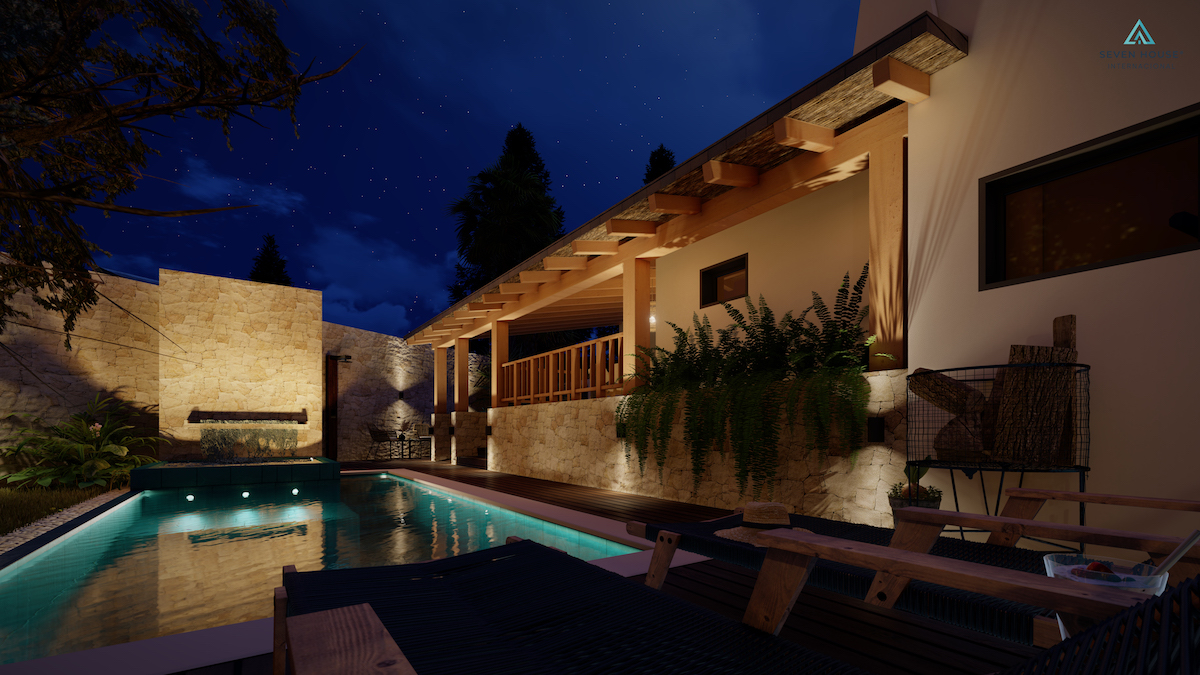 Uno de los principales retos fue integrar la cascada de manera natural sin alterar el diseño arquitectónico de la villa. Para ello, utilizamos piedras naturales y vegetación autóctona, logrando una transición fluida entre la piscina y el paisaje circundante.