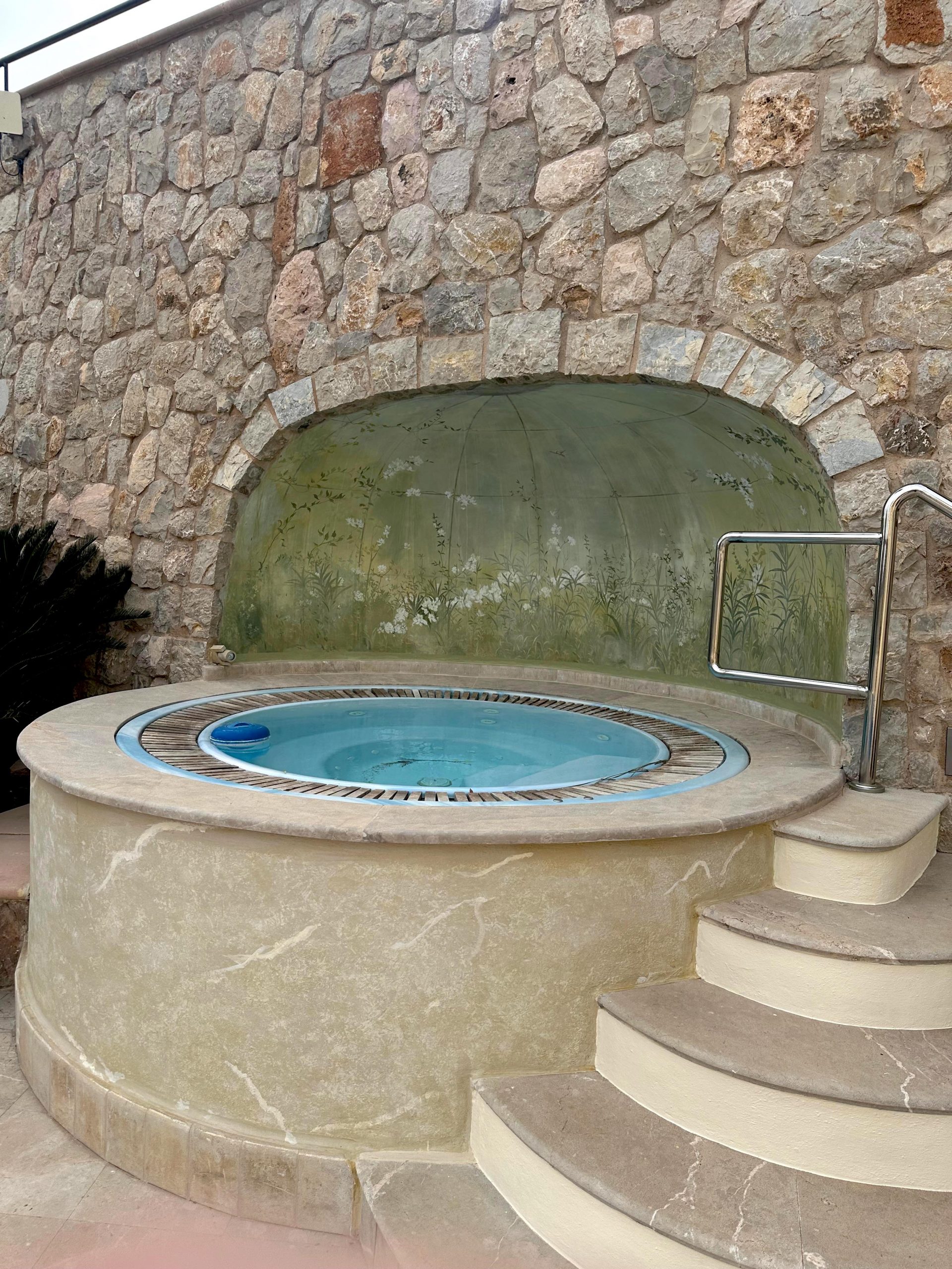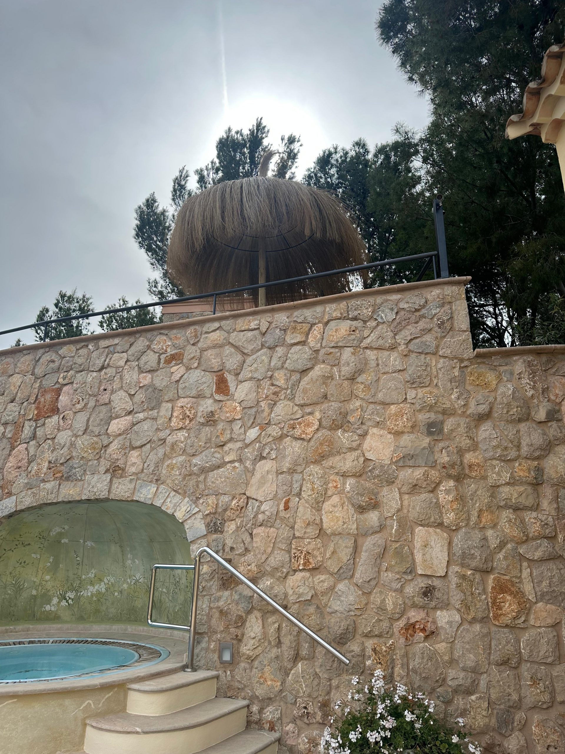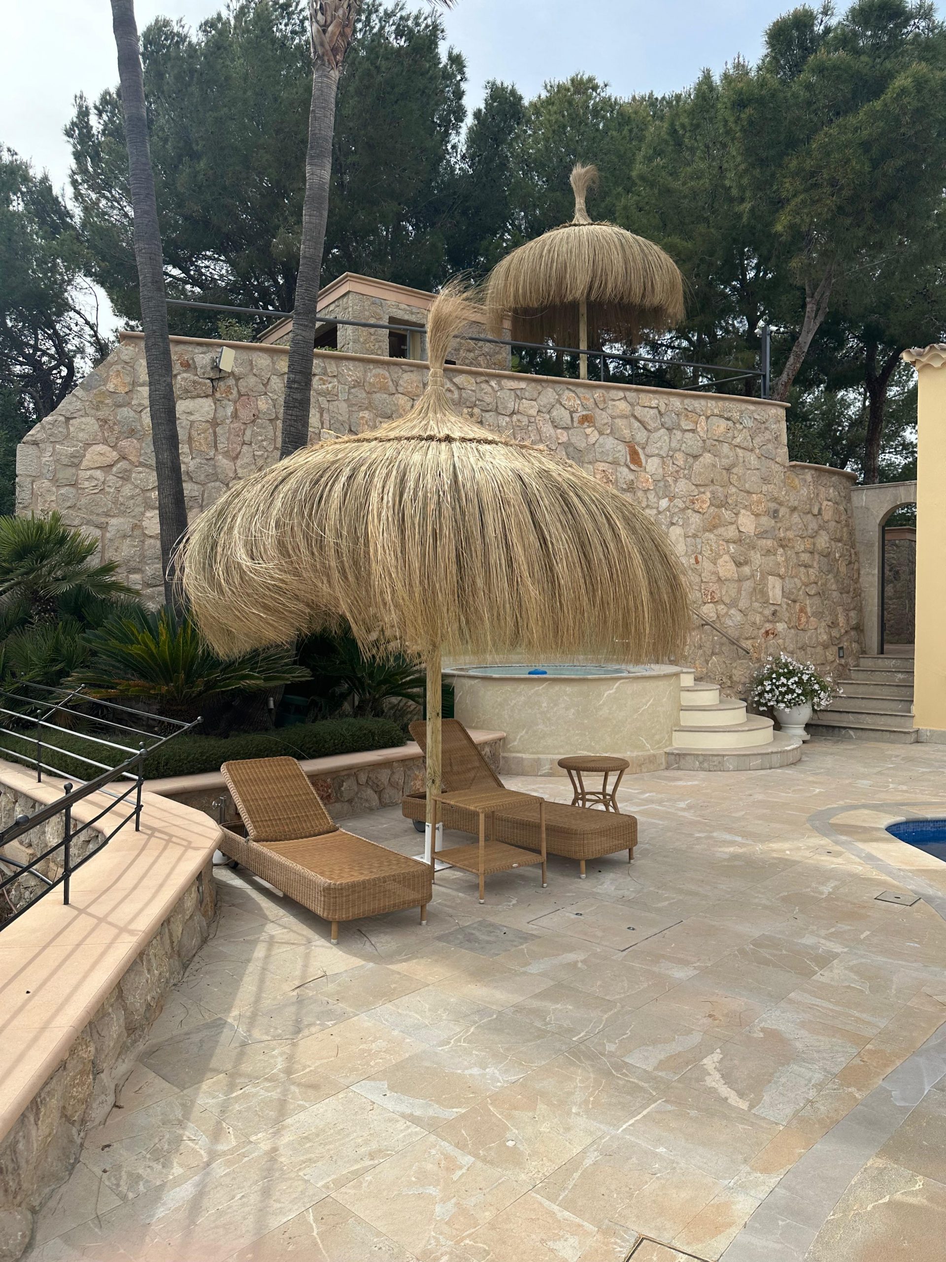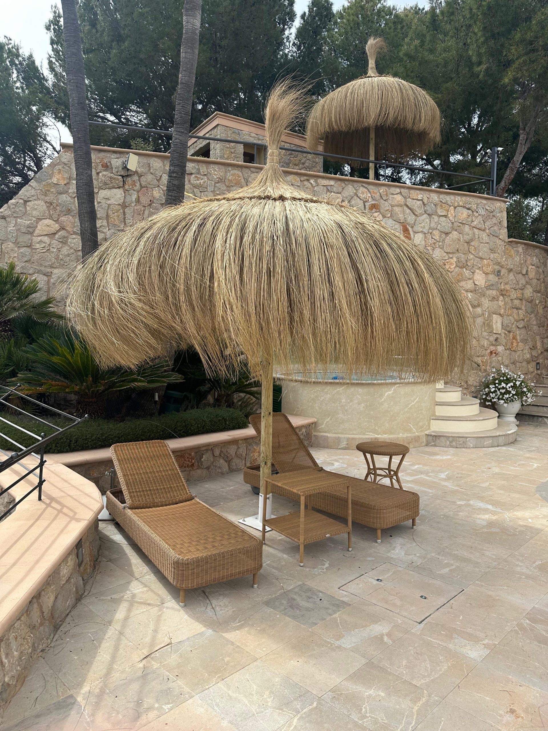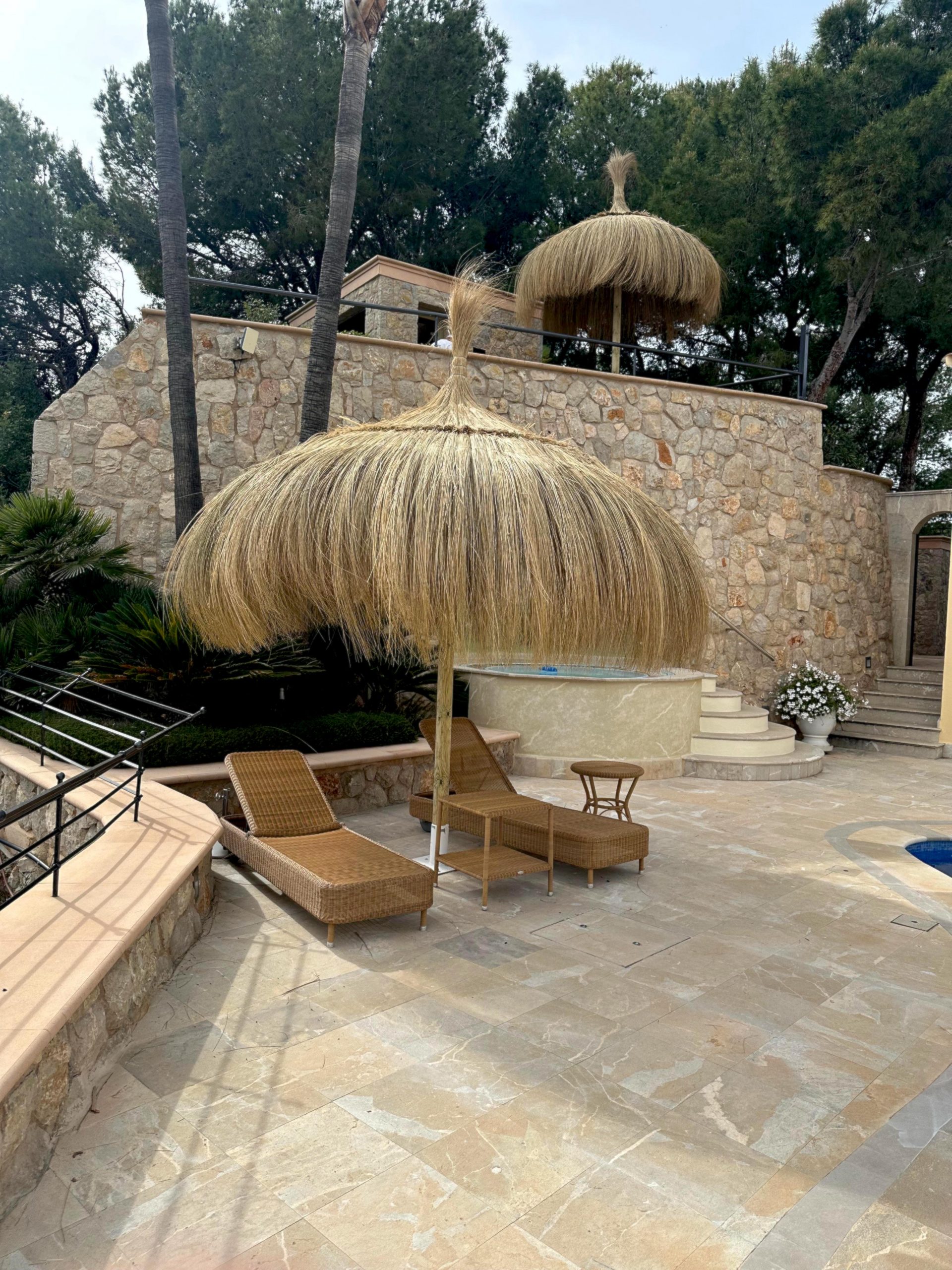 Refugio Natural en Mallorca: Instalación de sombrillas de cañizo, jacuzzi y sauna