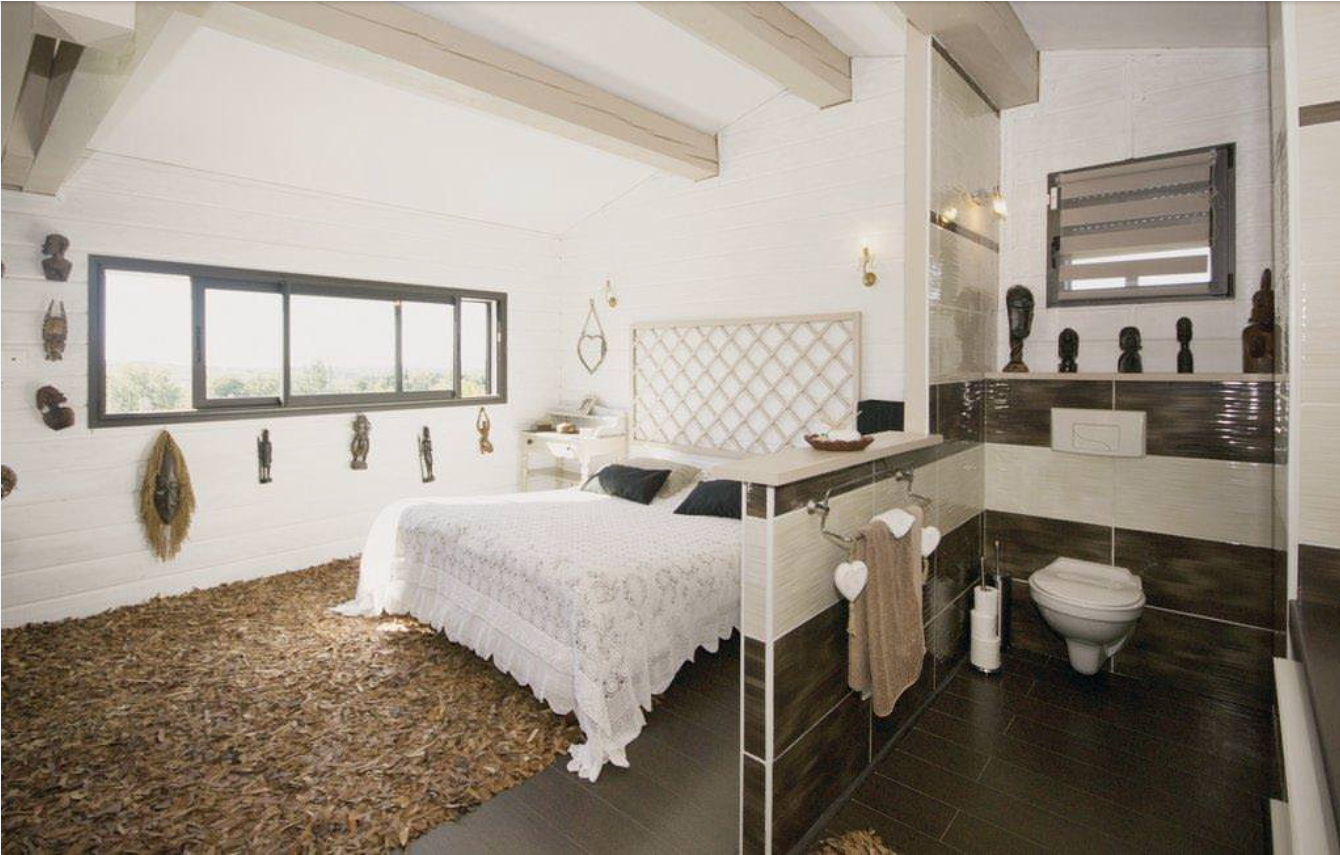 ✅ Uso de materiales sostenibles como piedra natural, madera reciclada y acabados de cal ecológica.