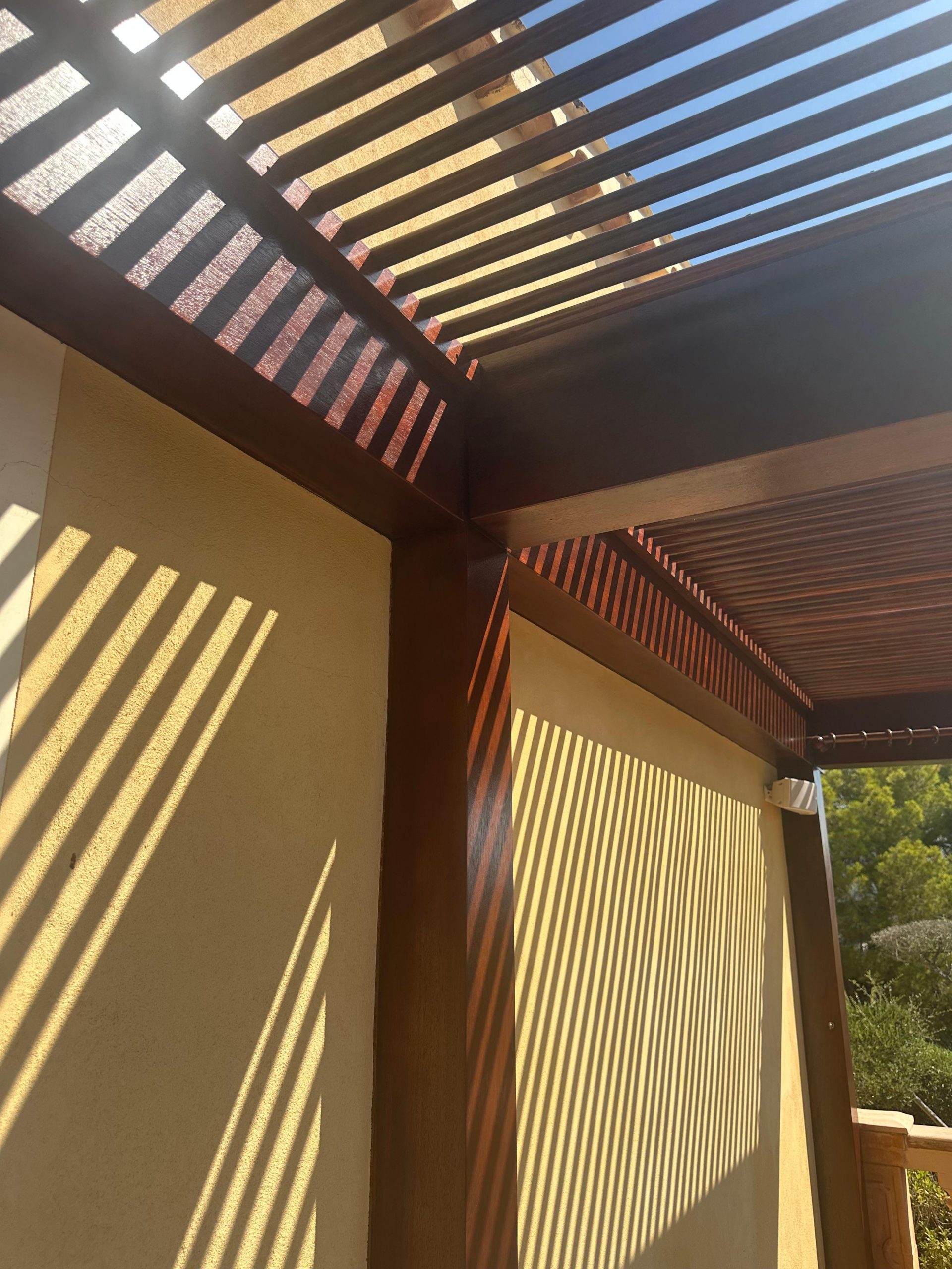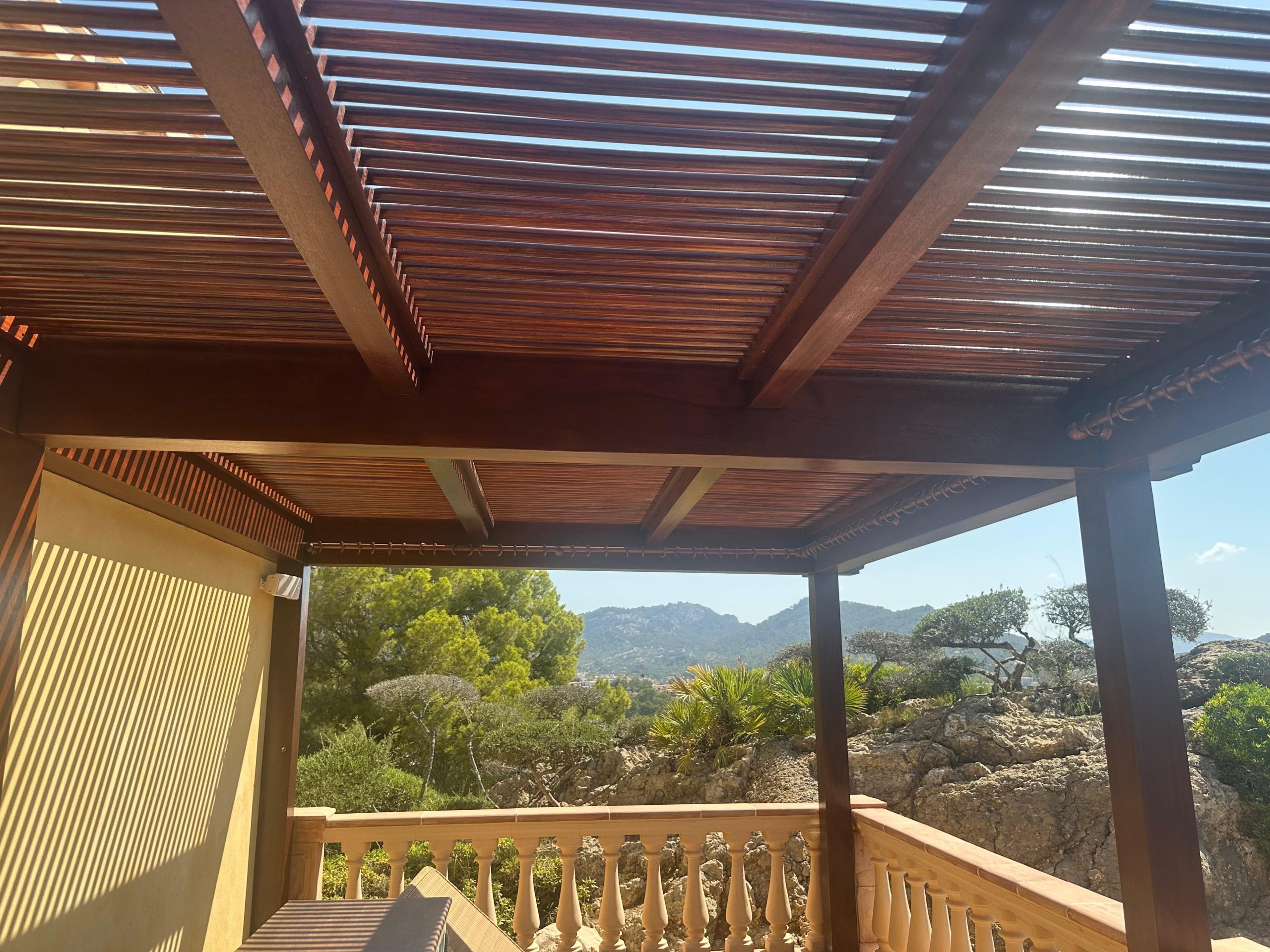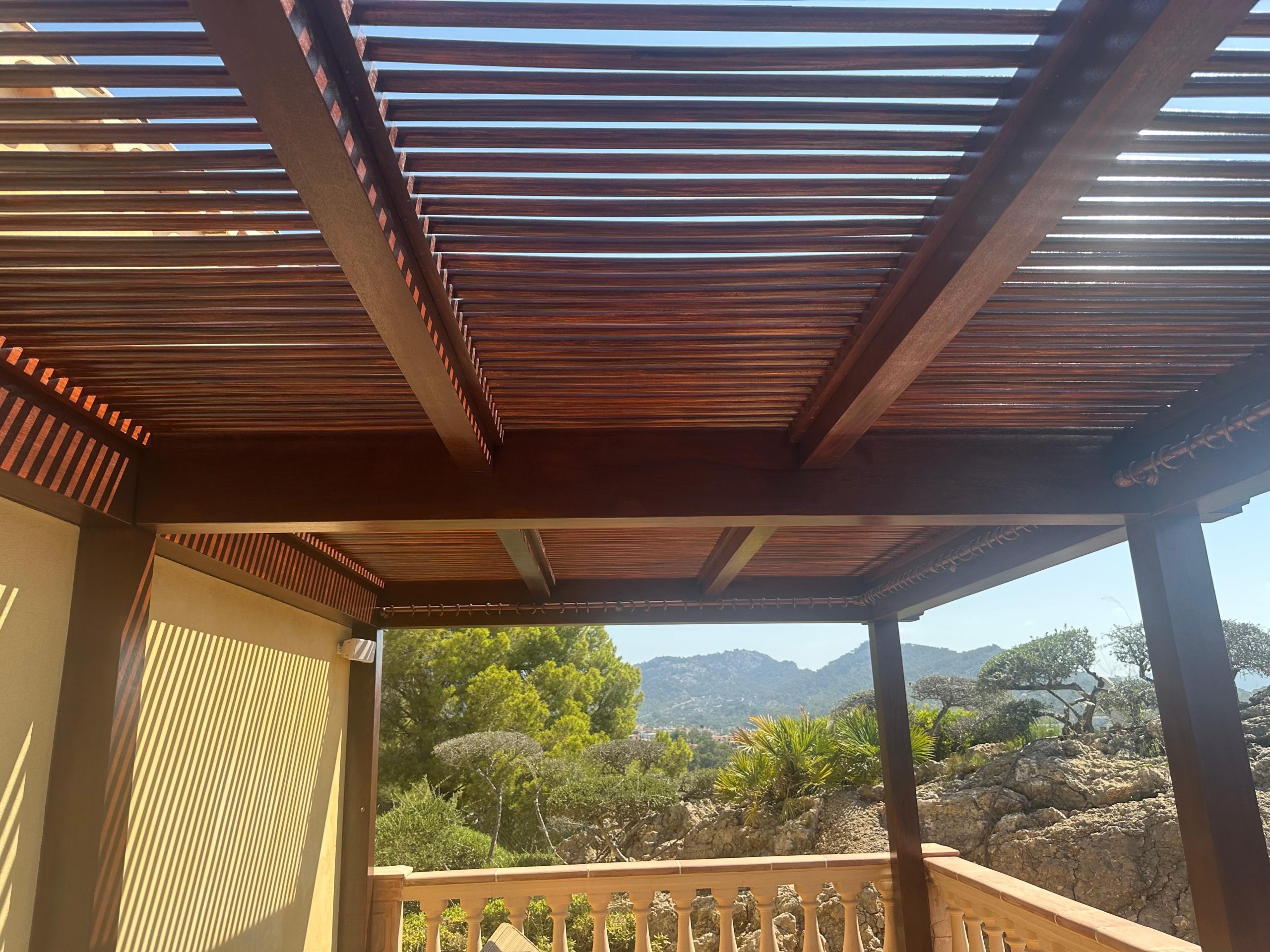 Proyecto destacado: Restauración de pérgola de madera Iroko en Mallorca