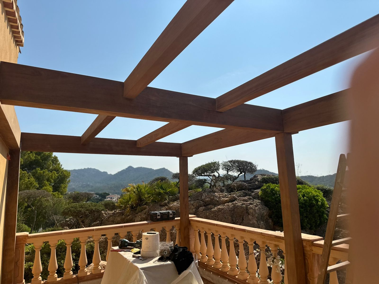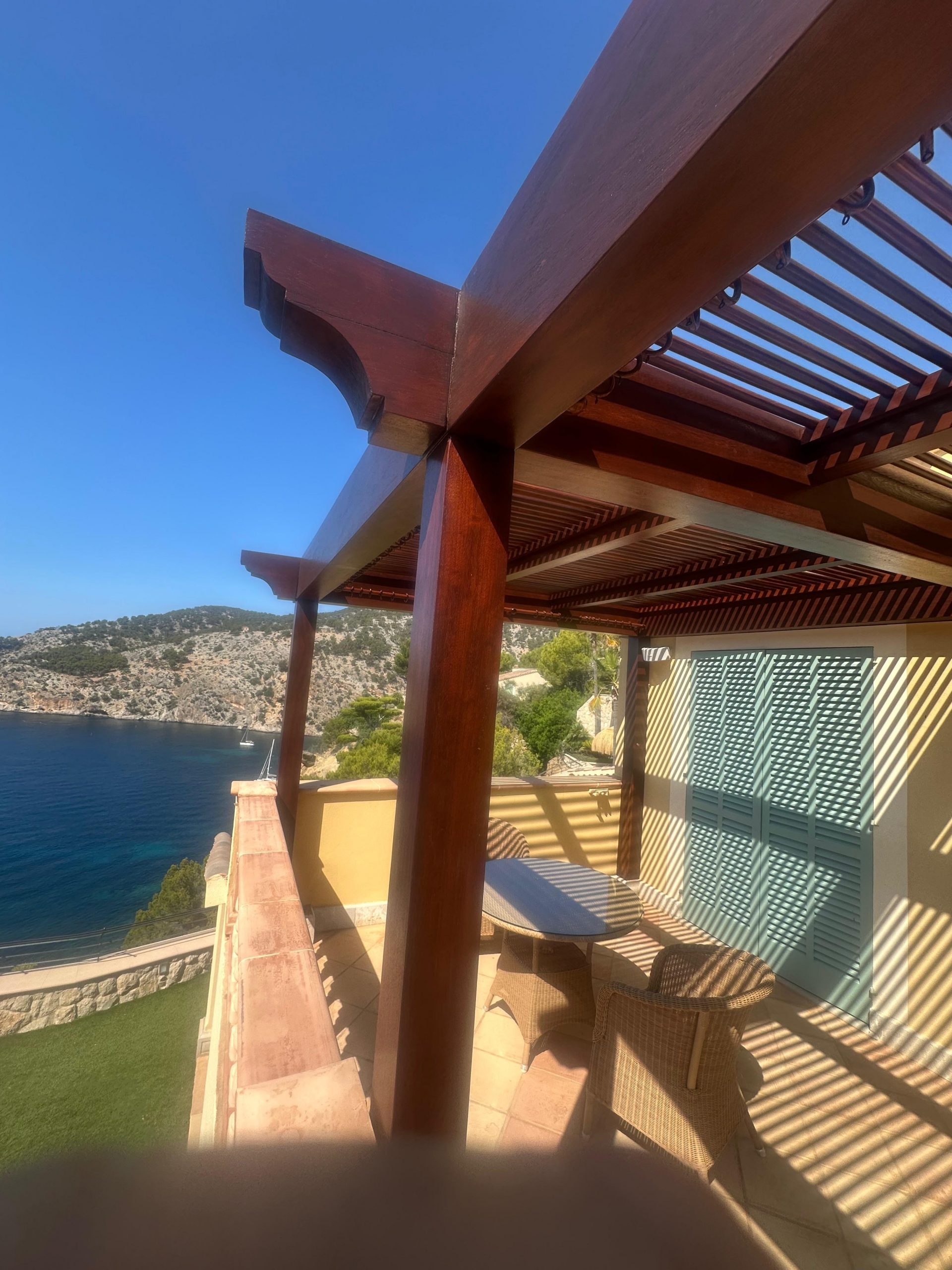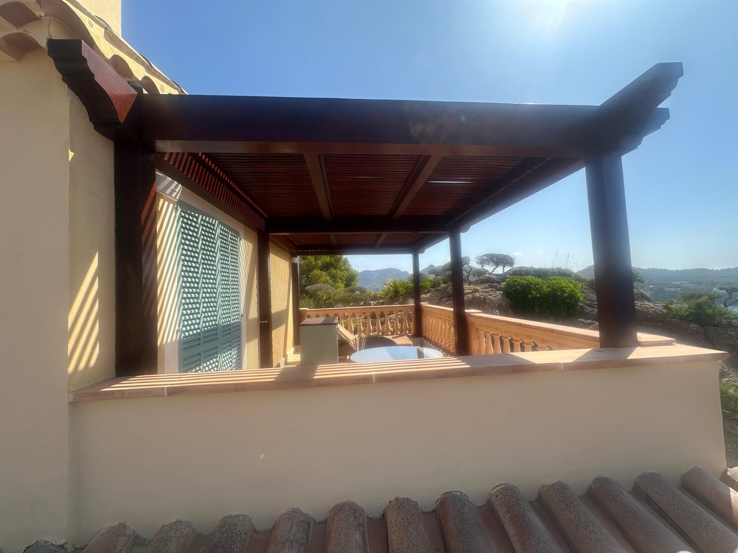 Proyecto destacado: Restauración de pérgola de madera Iroko en Mallorca