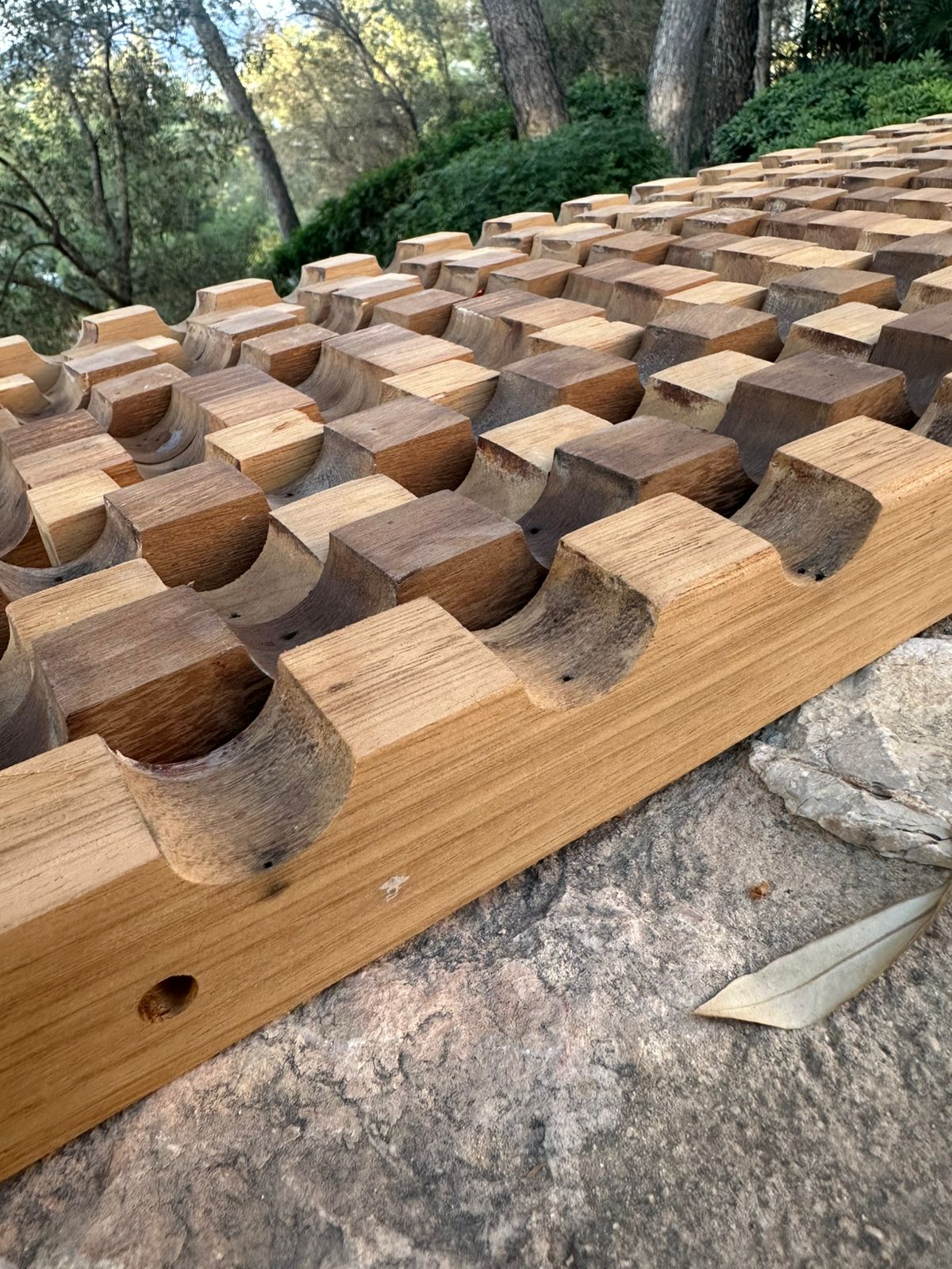 Reemplazamos listones de madera irreparables por nuevos elementos de Iroko, asegurando la continuidad estética y funcional de la estructura.